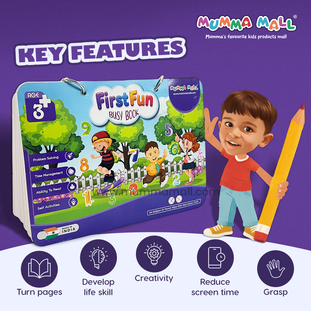First Fun Busy Book – Screen-Free Educational Activity Book for Kids Age 2–5 | Develop Focus, Problem-Solving & Early Learning Skills