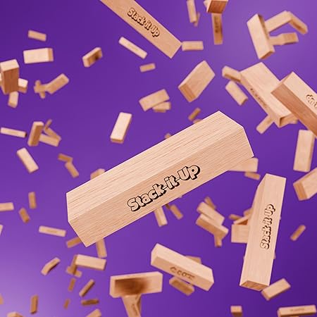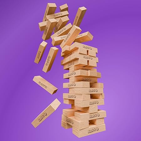 Stack-It-Up is a classic 54-block wooden tower game designed for kids and families. It’s fun, skill-building, travel-friendly, and perfect for game nights, parties, or learning through play — anytime, anywhere.